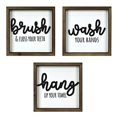 Free standard shipping with $35 orders. Farmhouse bathroom wall art decor art prints or canvas wall art. Sold and shipped by eforcity. Stratton home decor floss, flush, wipe, wash set of 4 cute rustic farmhouse decoration sign decorative bathroom wall art, black and white. This bath and laundry art print is the perfect finishing touch to your home décor theme. Yellow bathroom wall decor, relax soak unwind breathe, wall art for bathroom, vintage tulips watercolor wall pictures, salon spa wall decoration, floral minimalist wall art, set of 4, 8x10, unframed. For bathroom wall decor with more permanence, create a tile accent. The stupell home decor collection vintage toilet shaving laundry and soaps canvas wall art. 5 out of 5 stars. 9 pieces bathroom wall art wall decor, funny vintage bathroom sign bathroom quotes sayings art prints bathroom posters for wall restroom bathroom decor pictures, unframed (black font) 4.3 out of 5 stars 332. Ratings, based on 14 reviews. Sold and shipped by the lakeside collection. Stratton home decor acrylic burst wall sculpture in silver.